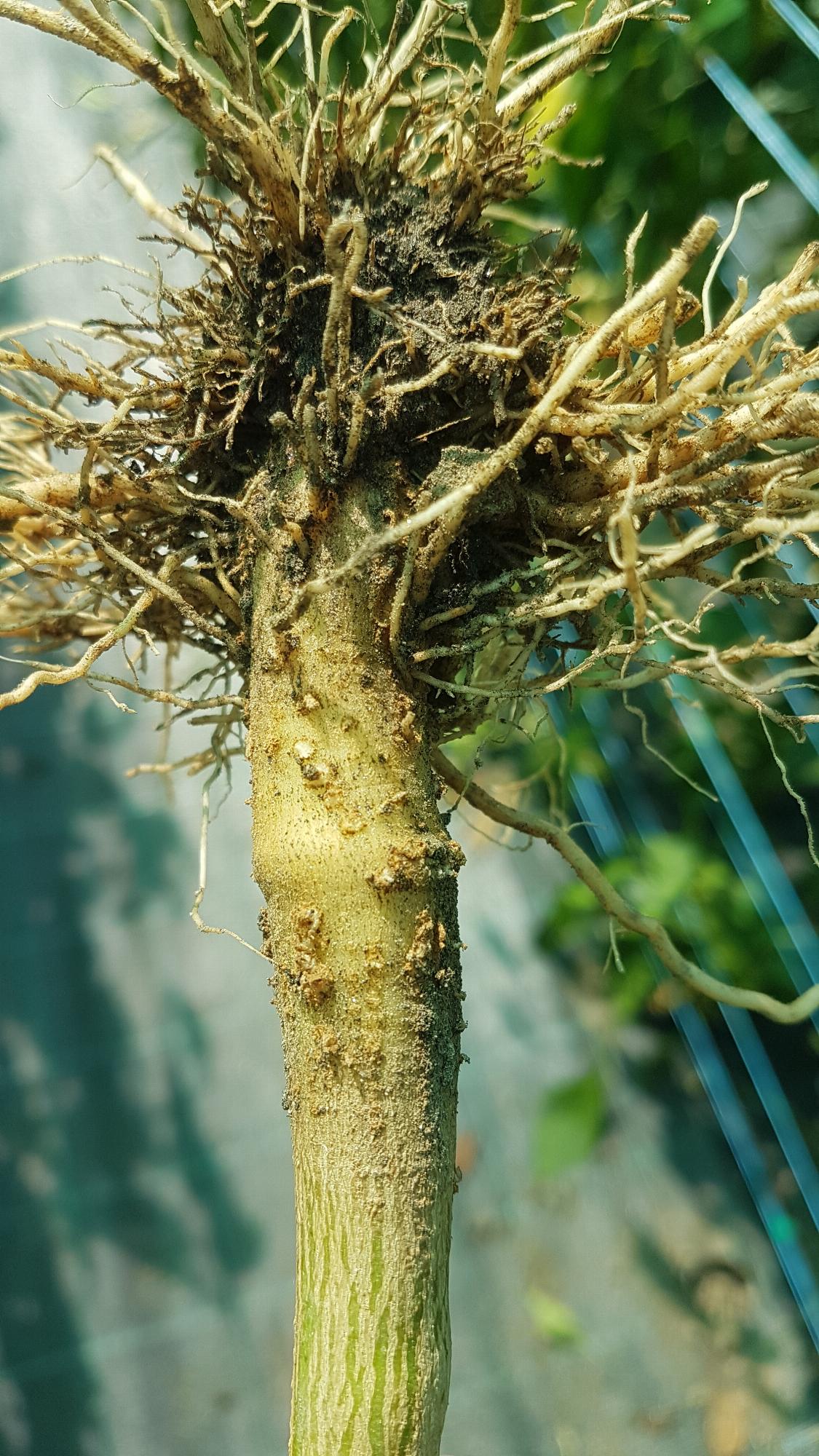 Újabb problémába ütköztem. Szépen fejlődnek a növények, 140-150 cm magasak, rengeteg virág és termés van rajtuk. De most egy néhány tő elkezdett hervadni. Kiúztam egy tövet és penész szerű dolog van a száron a gyökérnél. Fuzárium vagy hasonló? Van rá valami megoldás?
