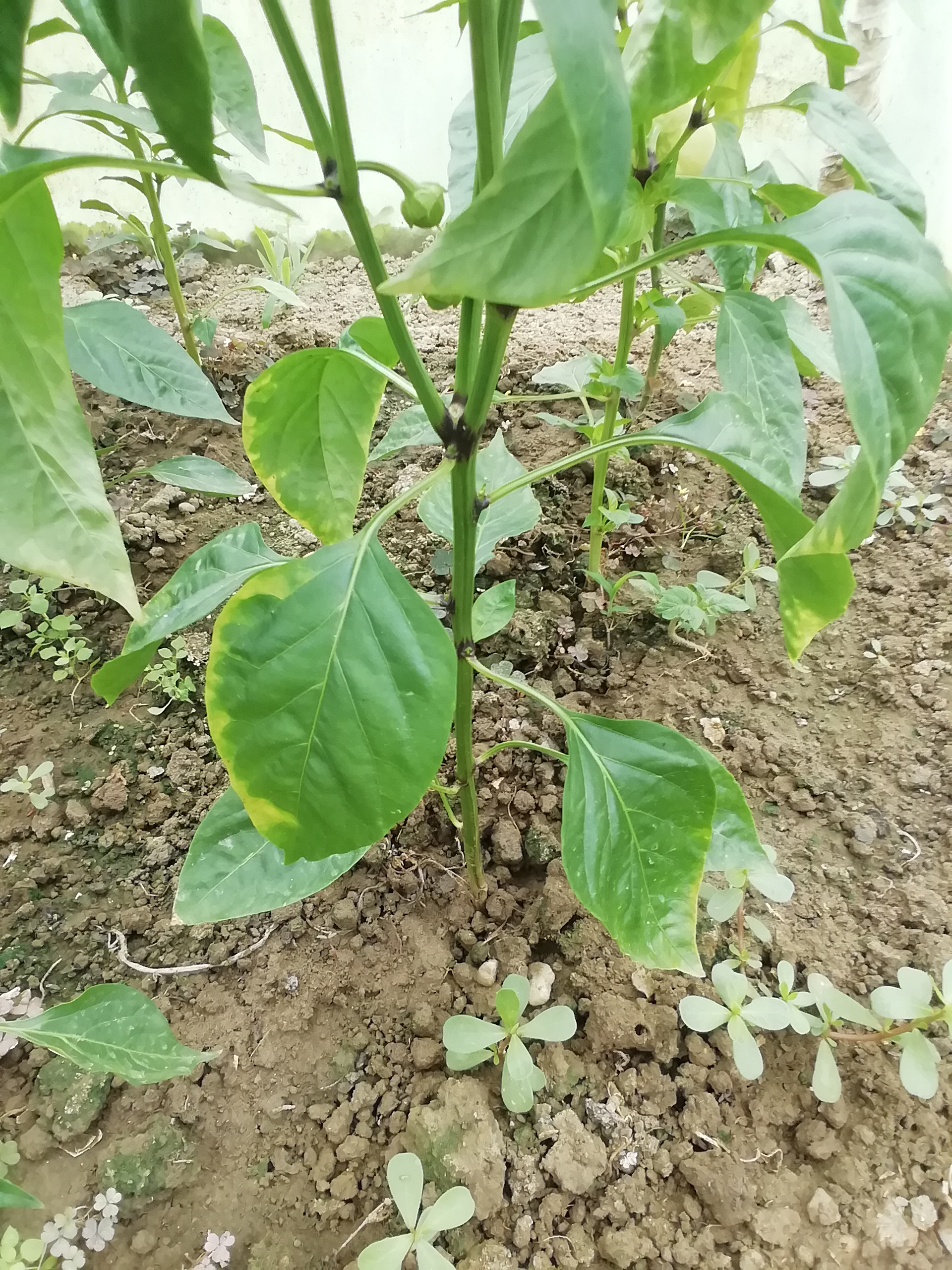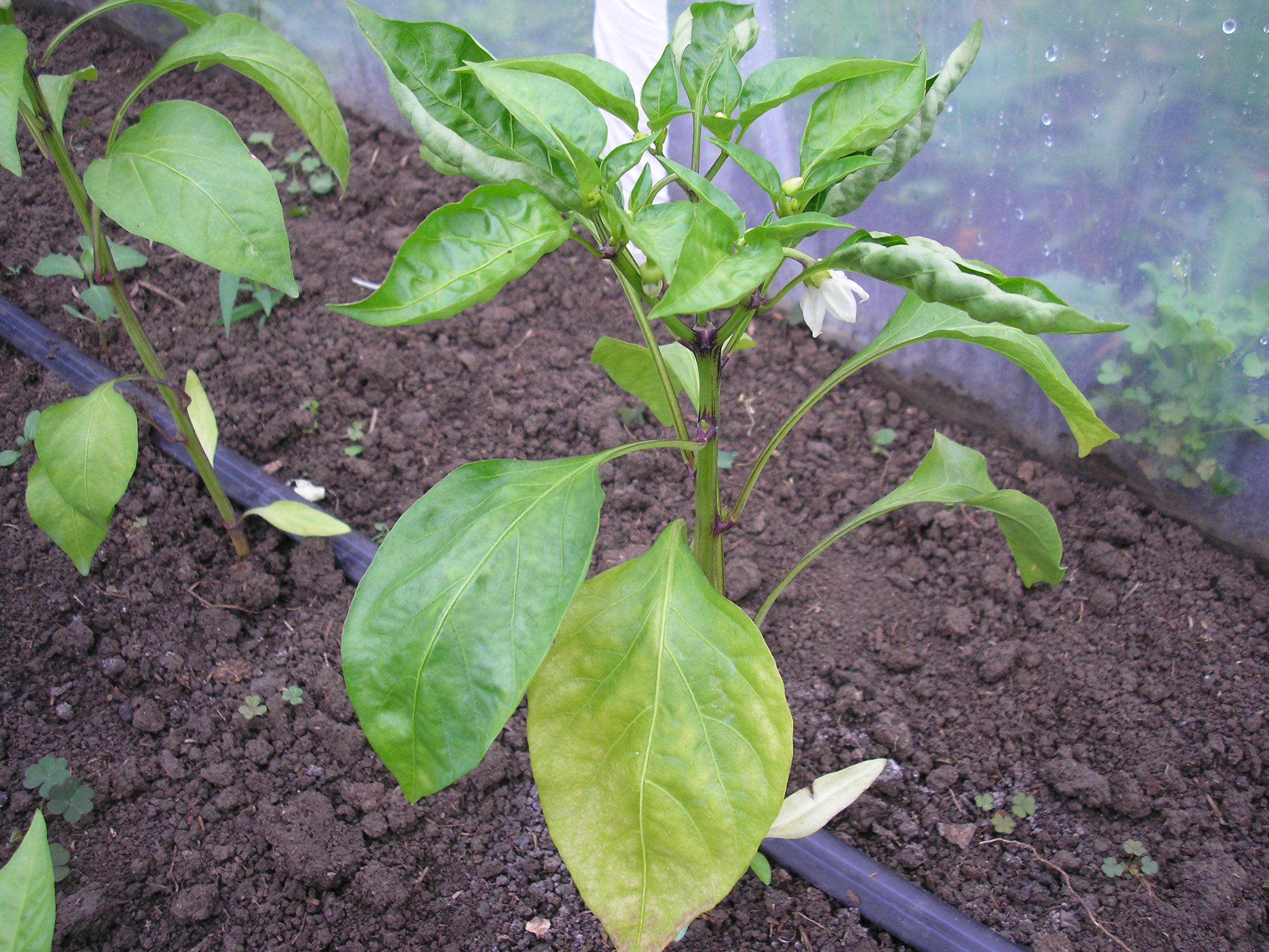 A paprikákon nem betegség, hanem tápanyaghiány jelei látszanak, a sárguló levelek a Nitrogén hiányára utalnak. Célszerű lehet nitrogén túlsúlyos tápoldattal kezelni a növényeket.