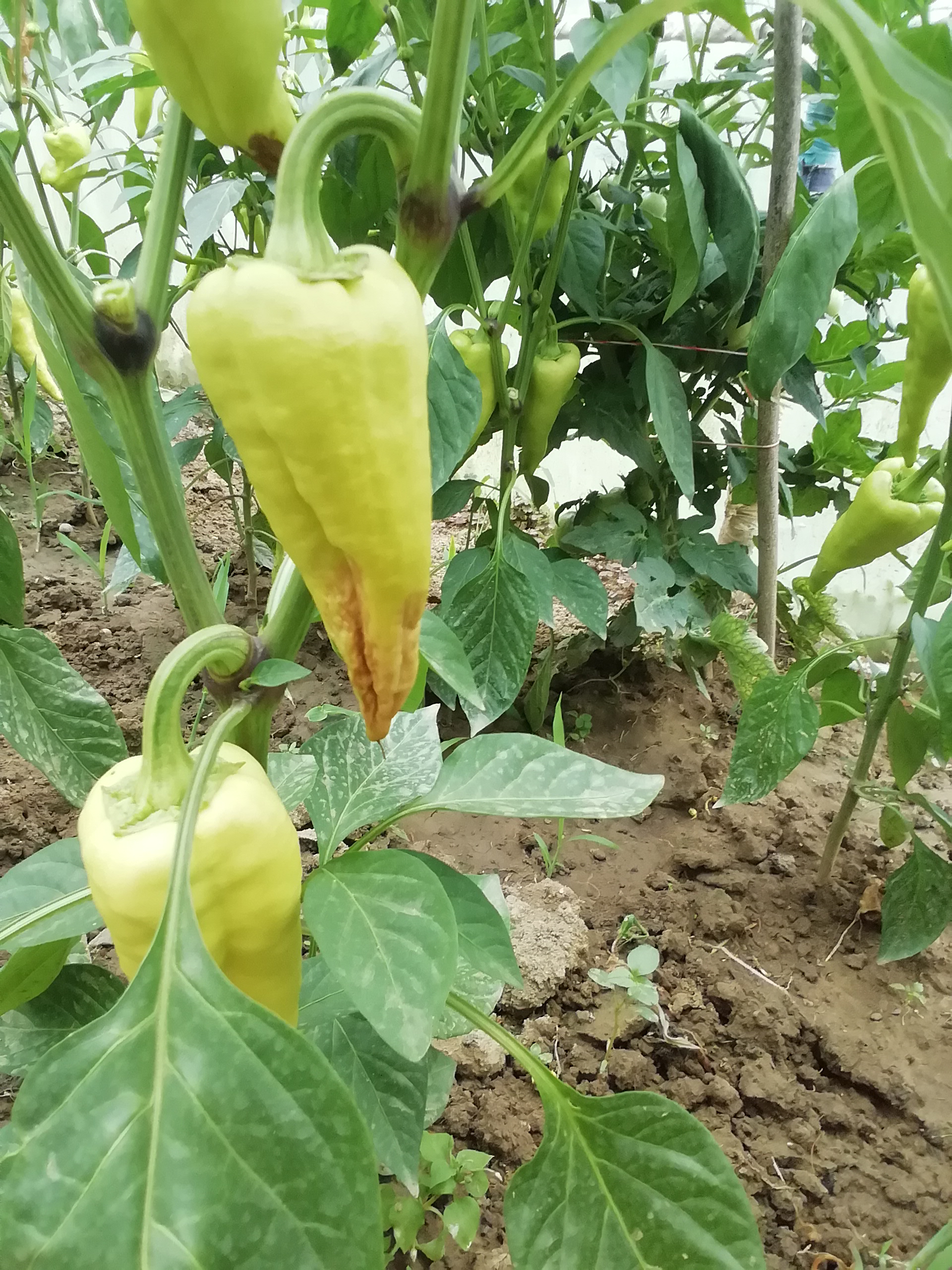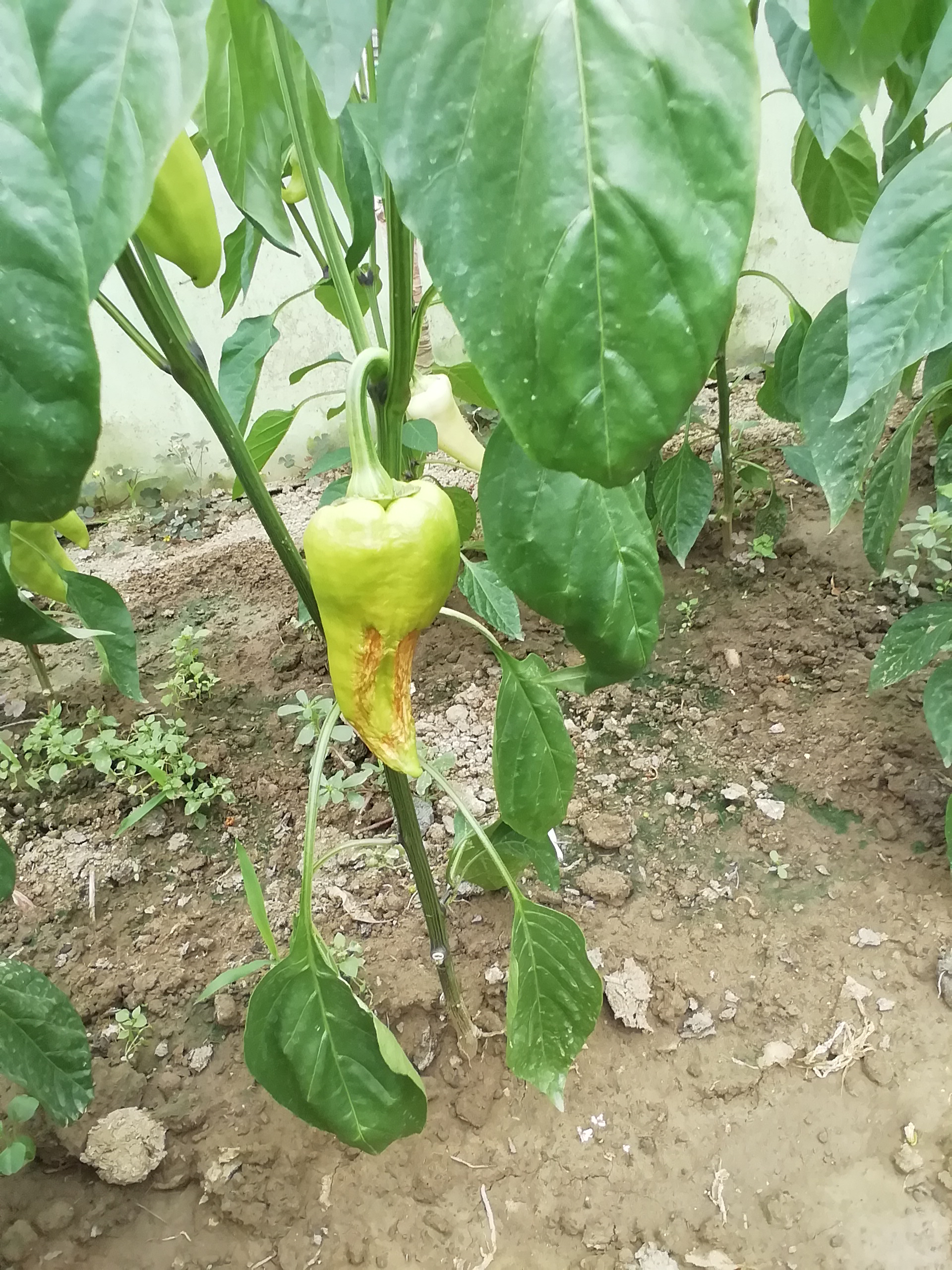 Kb egy hete a paprika termése a végeken, illetve teljes egészében foltokban rozsdás színű.Az alsó levelek sárgulnak.