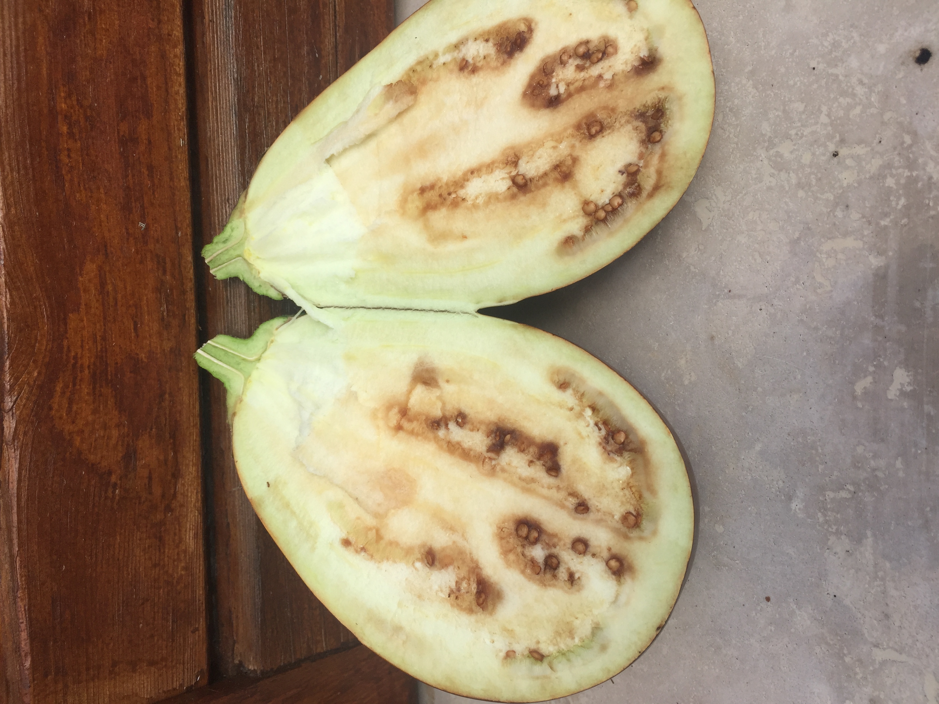 A padlizsánom sárgás barna nem lila de van rajta teljesen lila és fényes termés.Mellékelem a fotókat.Mi a baja?