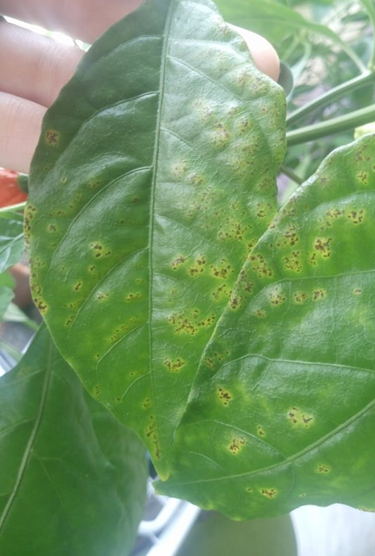 Chili paprikákon barna doltok jelentek meg a levelein. Baktérium,v gomba?