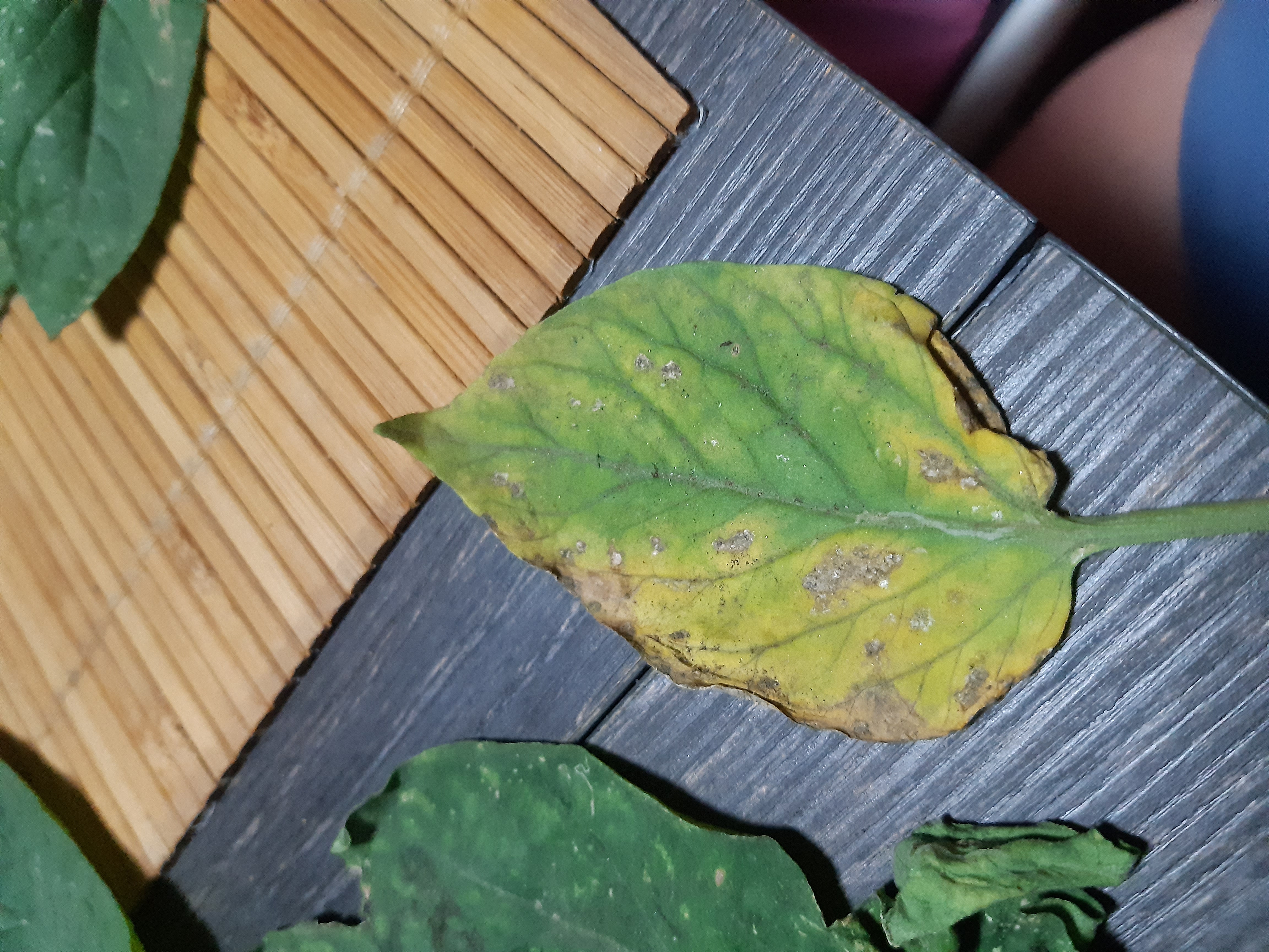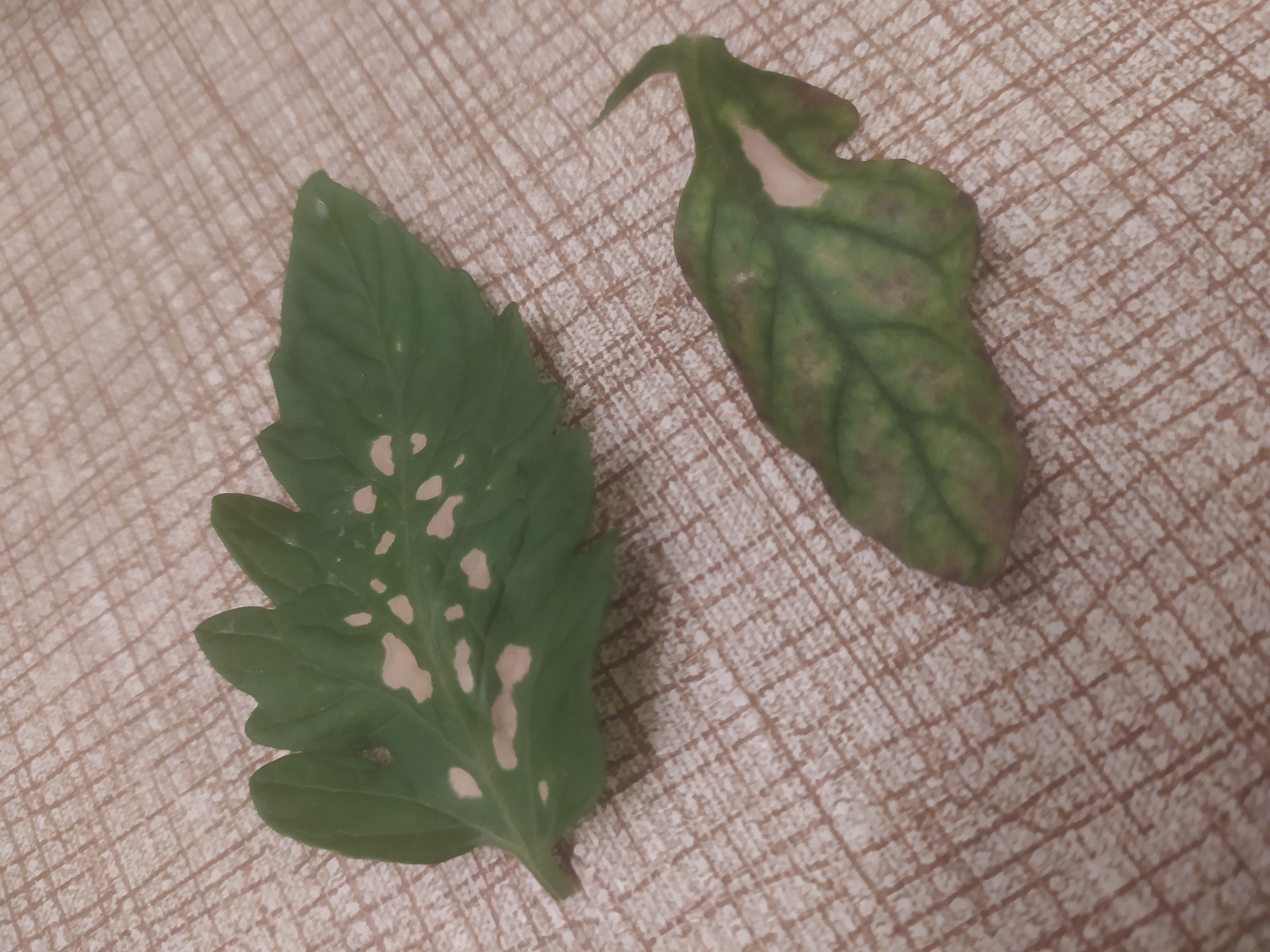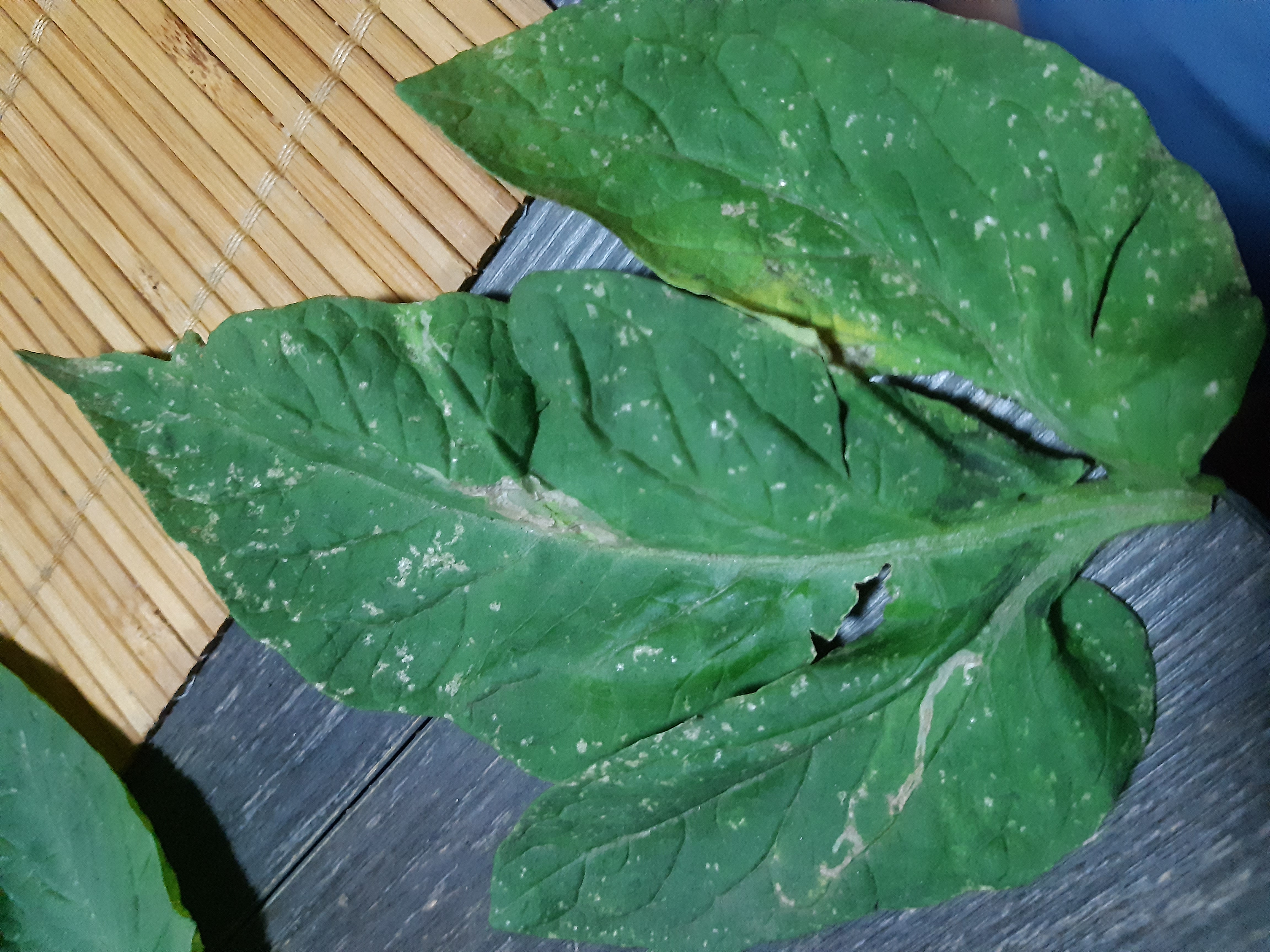 Fóliasátorban a paradicsom palántáim levelein ilyen elváltozásokat tapasztalok, az egyik tő szinte teljesen ki is pusztult.