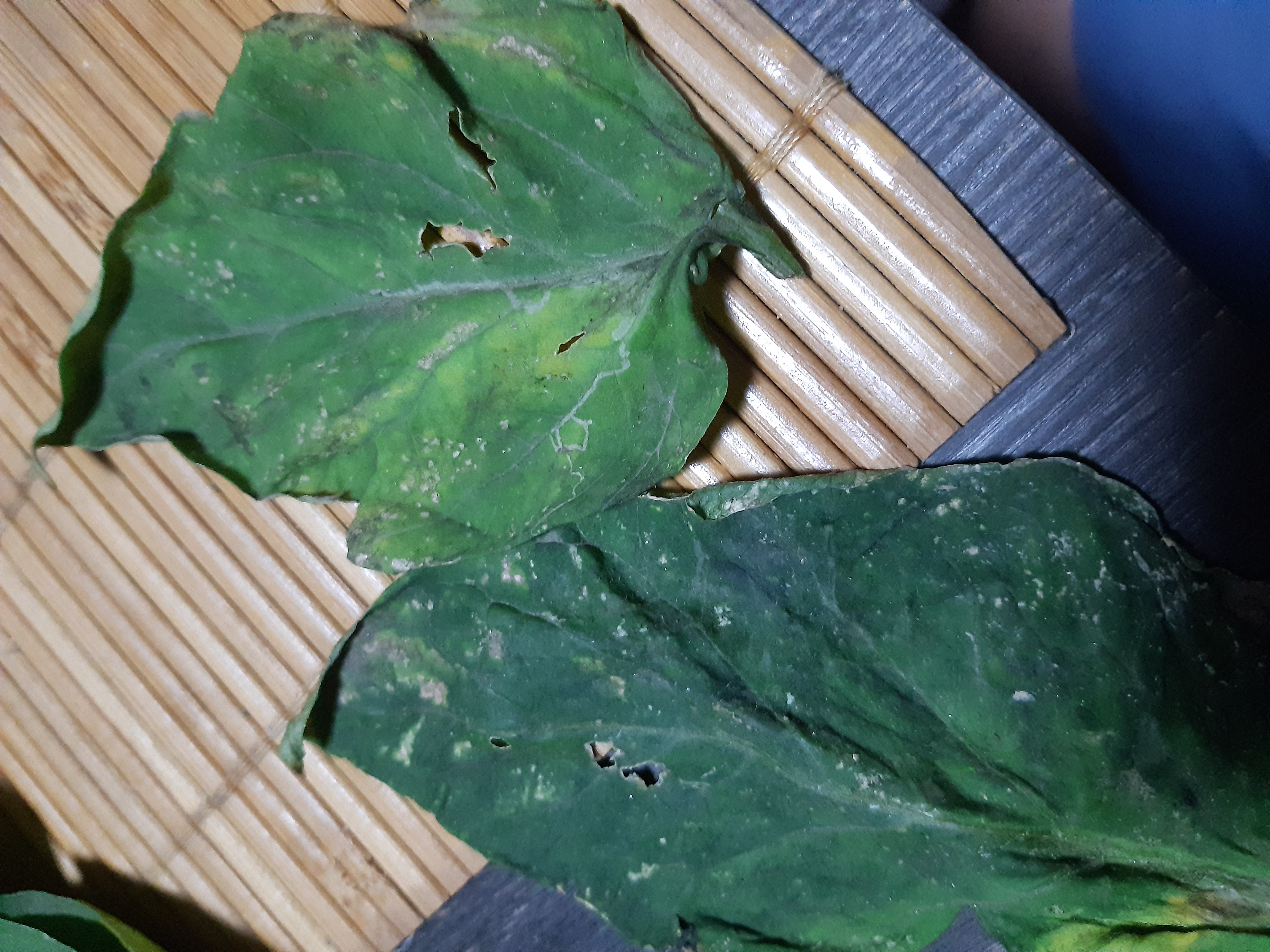 Jó volna tudni, milyen hatások érték a növényeket - túlöntözés, sok tápanyag - esetleg nem jó arányú tápelemekkel - permetezés olajos szerrel - káliszappan - . Mindezekre azért gondolok, mert a zöld szín mellett lilás és némi sárga elváltozás látható. Ha ezekre válaszol - vagyis a tartási körülményeket vázolja - kiválaszthatom az igazi okozót.