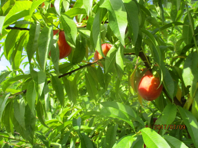 A mellékelt képen szereplő őszibarackom most éri. gyümölcs kb. 140gr. nem magvaváló kb.60mm átmérőjű termése van igen ízletes.