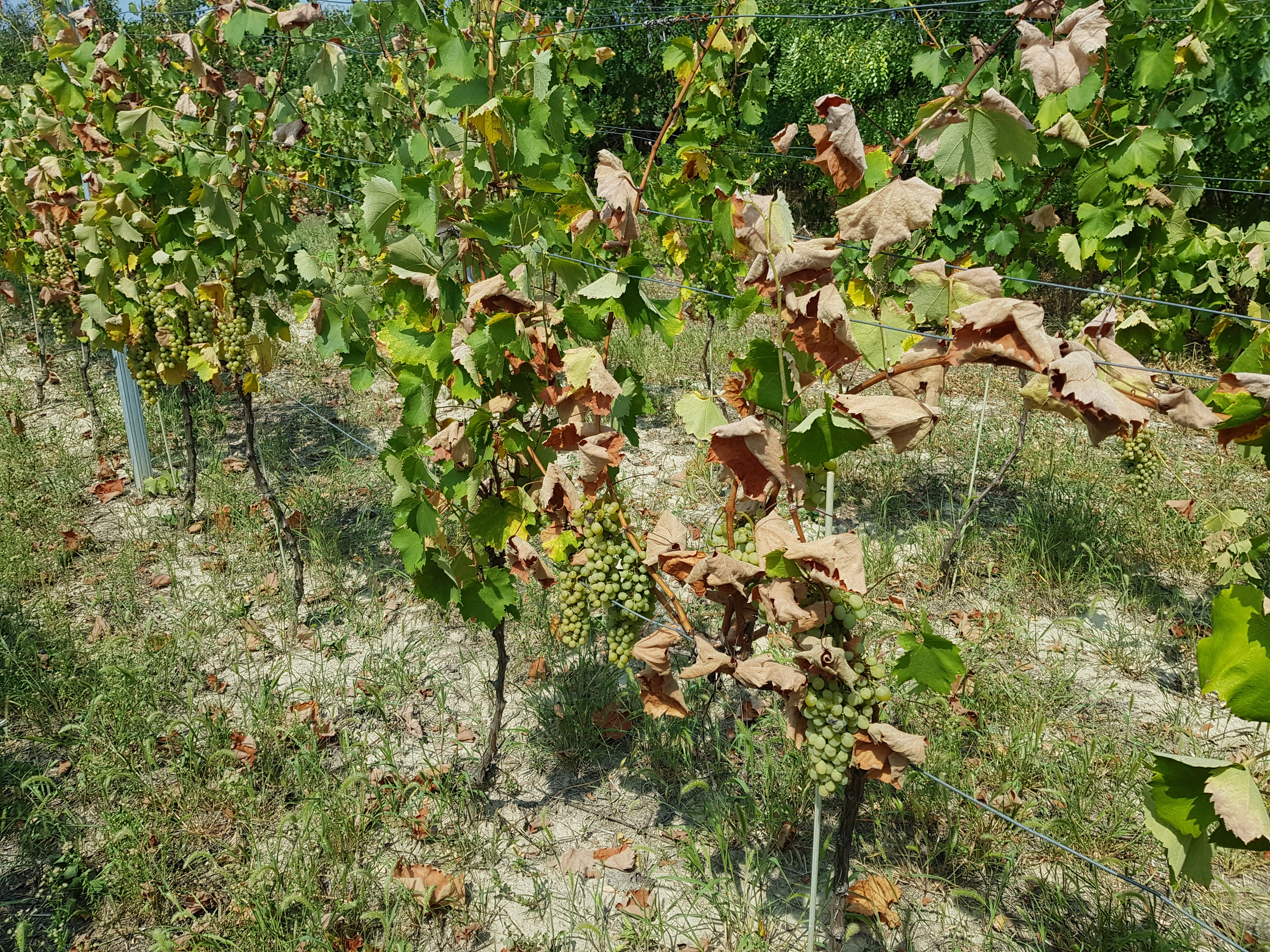 2014 tavaszán telepített fiatal Furmint szőlőmben tapasztalom a képéken látható jelenséget. A teljes ültetvény 50%-a Így néz ki. Ökológiai permetezést alkalmazok narancsolajos lombtrágyával. Nem tudom eldönteni, hogy tőkeelhalásról vagy az aszály miatt elszáradásról van szó. Utóbbi esetében esetleg öntözéssel még javítható a helyzet?