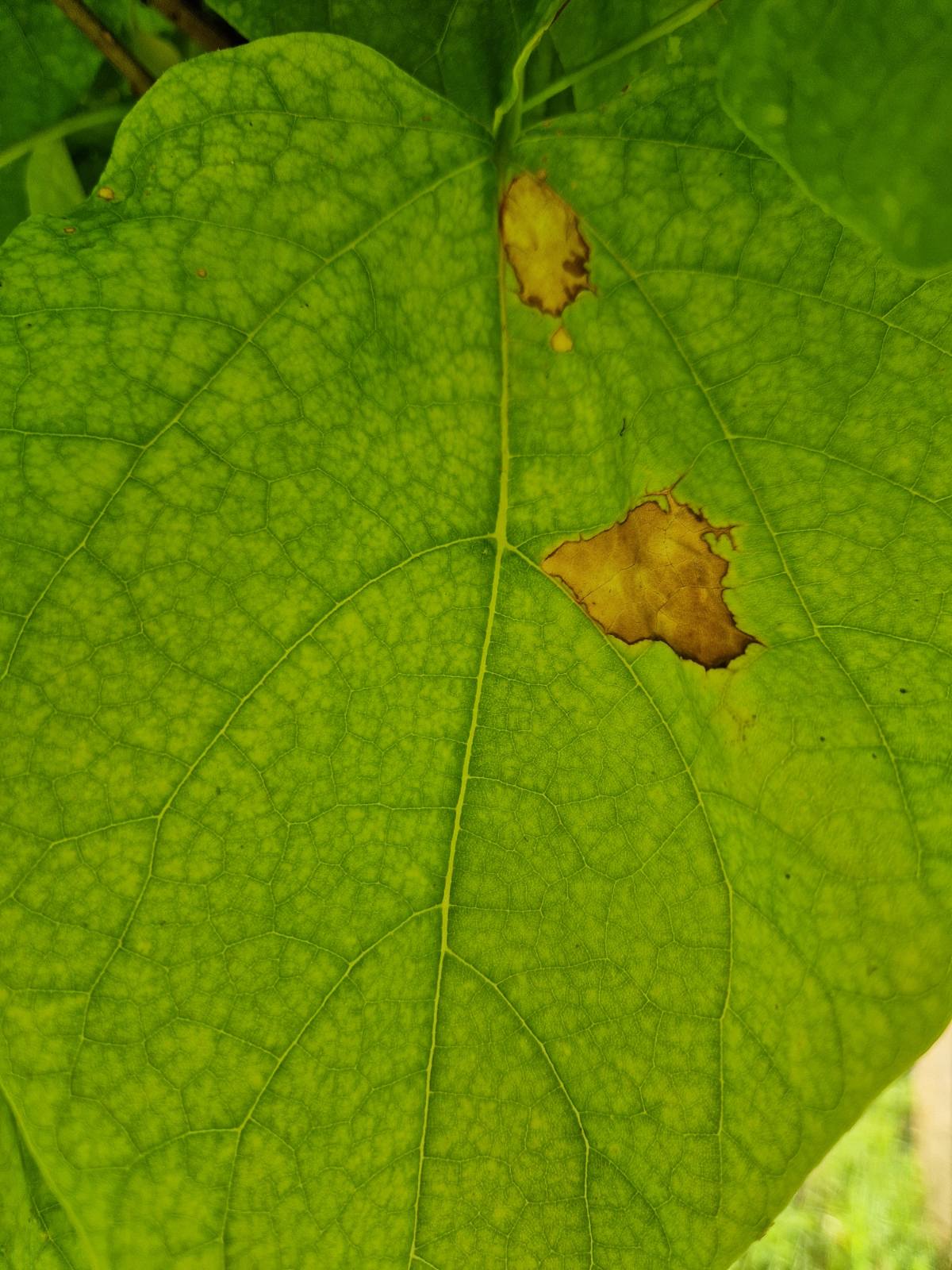 Idén tavasszal ültettük a mellékelt szivarfát.Szépen növögetett eddig (most mintha ez a folyamat lelassult volna). A problémánk a hangyásodás (de nem látunk élősködőt), valamint nemrég megjelentek a leveleken barna foltok a leveleken. Többször leszórtuk Mospilan-nal. Ön szerint mi lehet a gond?