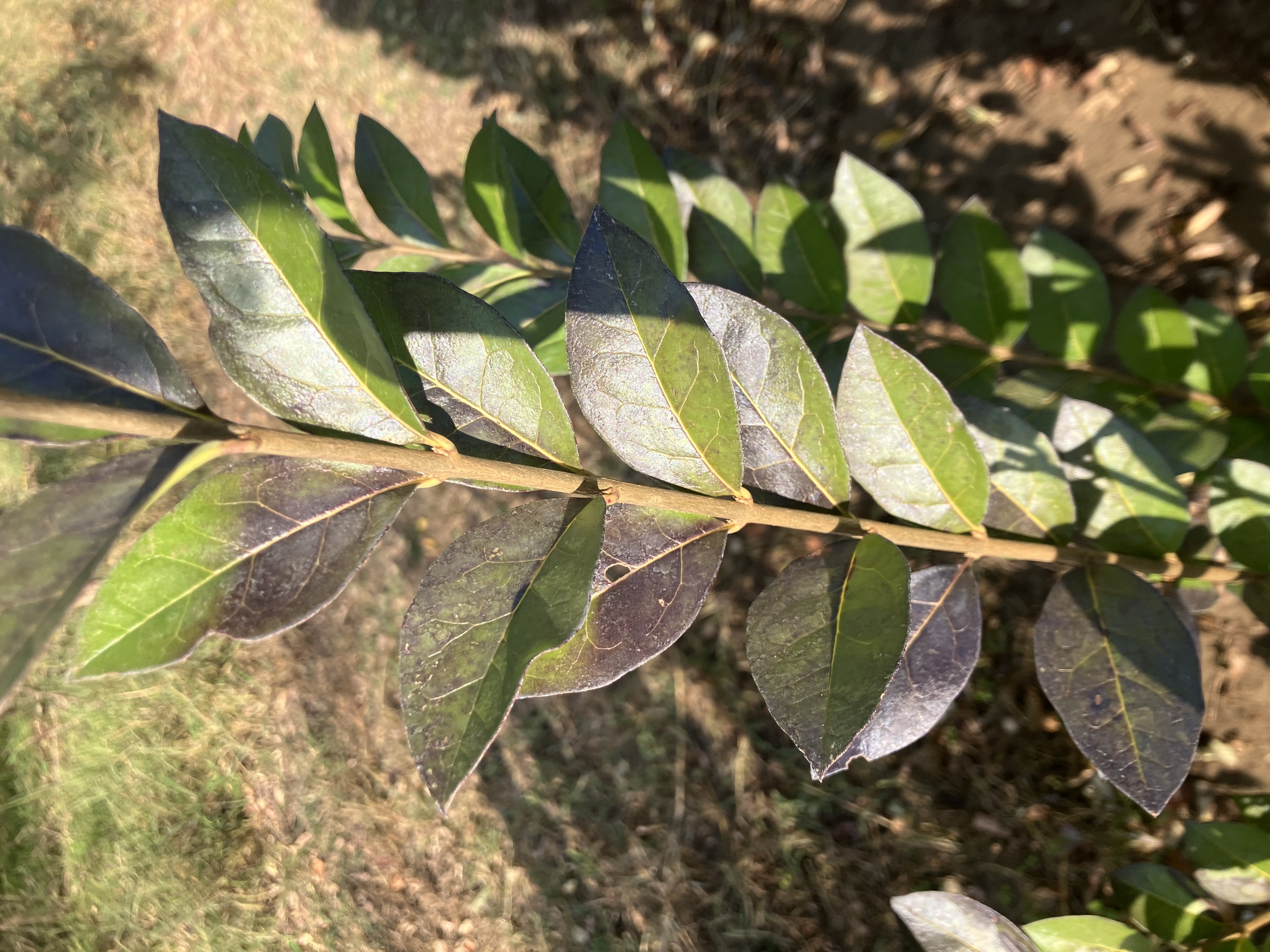 kedves Edit. Lilás elszíneződés természetes a télizöld fagyalon ősszel, tél elején. Antociánosodás: https://www.gazdabolt.hu/cikkek-hirek/cikk/mitol-szinesek-osszel-a-fak