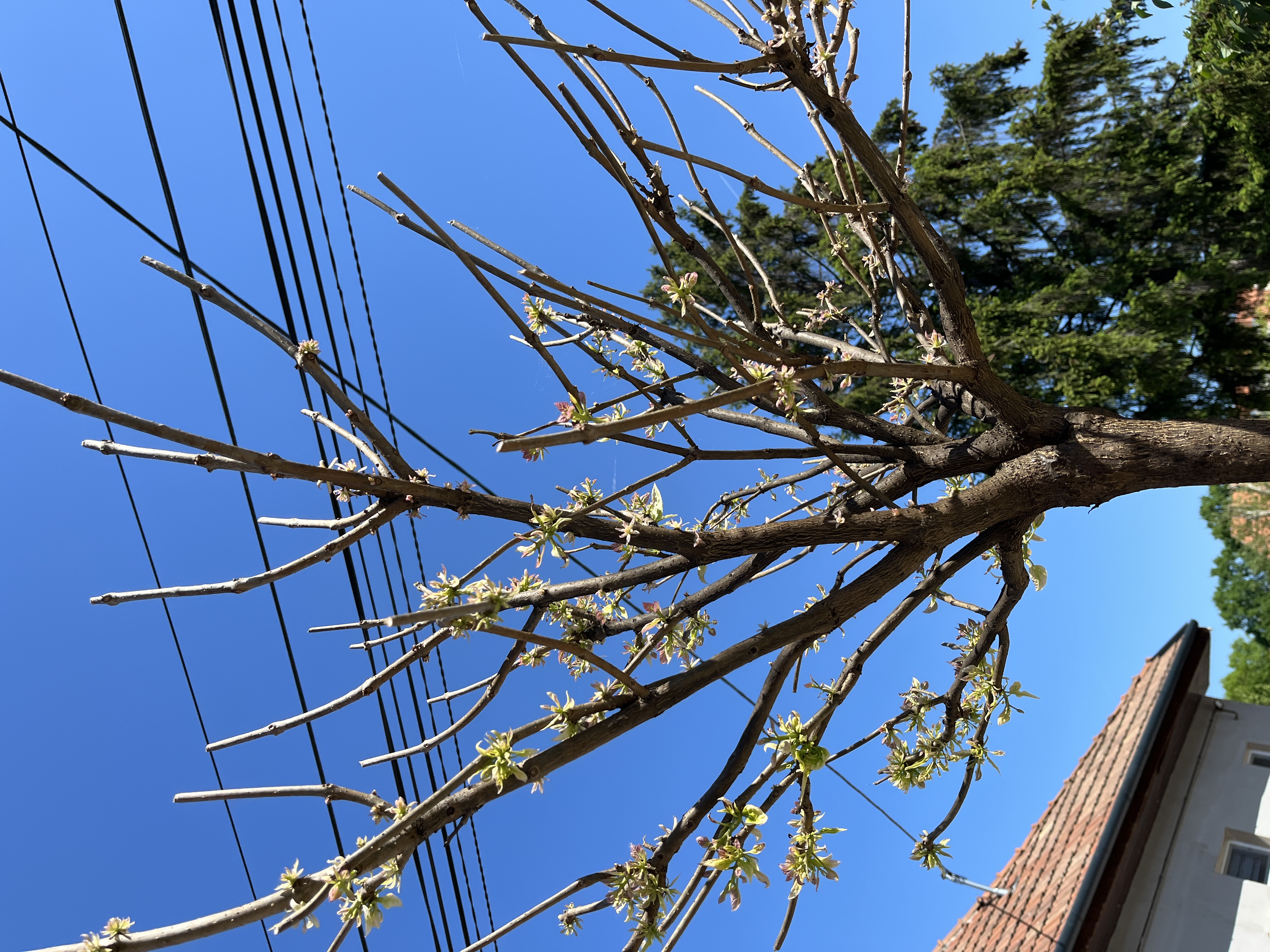 A házunk előtt két gömbszivarfa van. Az egyik gyönyörűen hajt (első kép), a másik viszont épphogy éledezik (2. kép). Mi lehet a baj?