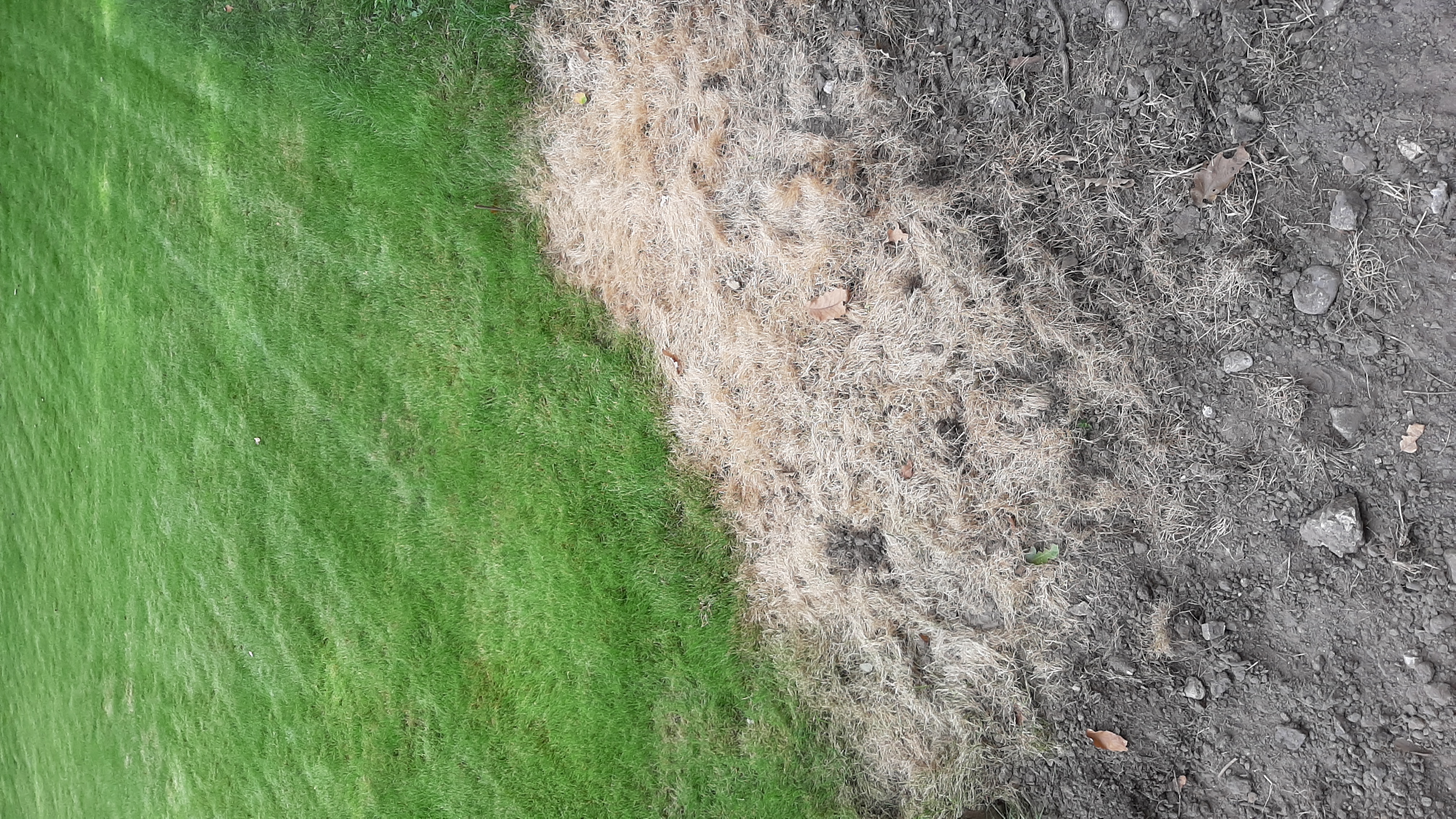 Segítségét szeretném kérni a képen látható folttal kapcsolatban. A gyep egyik sarkában jelentkezett, kb. úgy néz ki, mintha gyomirtóval lett volna lefújva, teljesen elszáradt a fű ezen a részen. Ez hópenész lenne? Öntözőrendszerrel öntözöm, 3-4 naponta. Különböző gombabetegségek jelentkeztek többször is, ezért rendszeresen (3-4 havonta) kezelem Dithane-nel, illetve esetenként dithane-bumper-amistar keverékkel. Ha hópenész, azt mivel tudom kezelni? Köszönettel