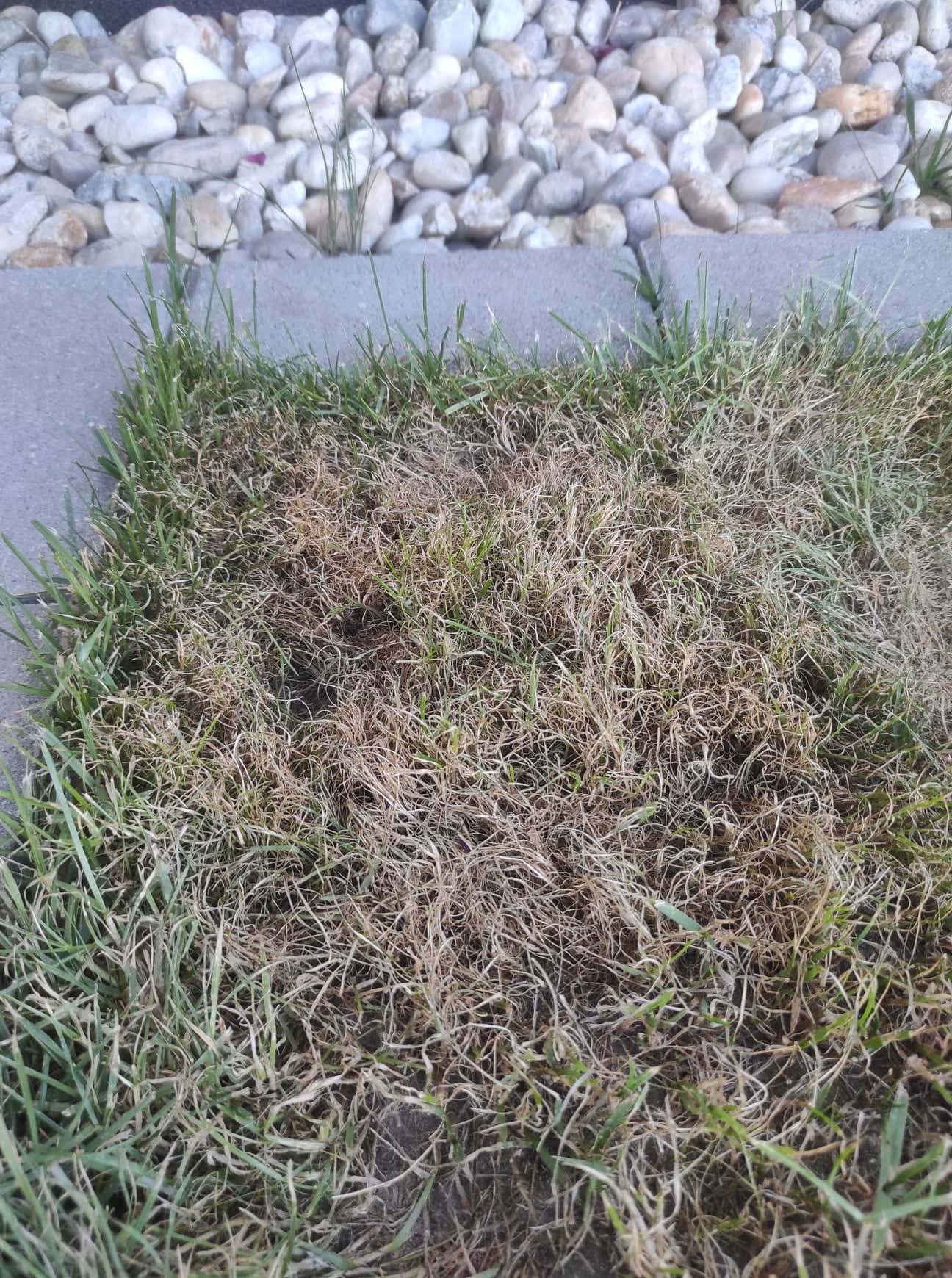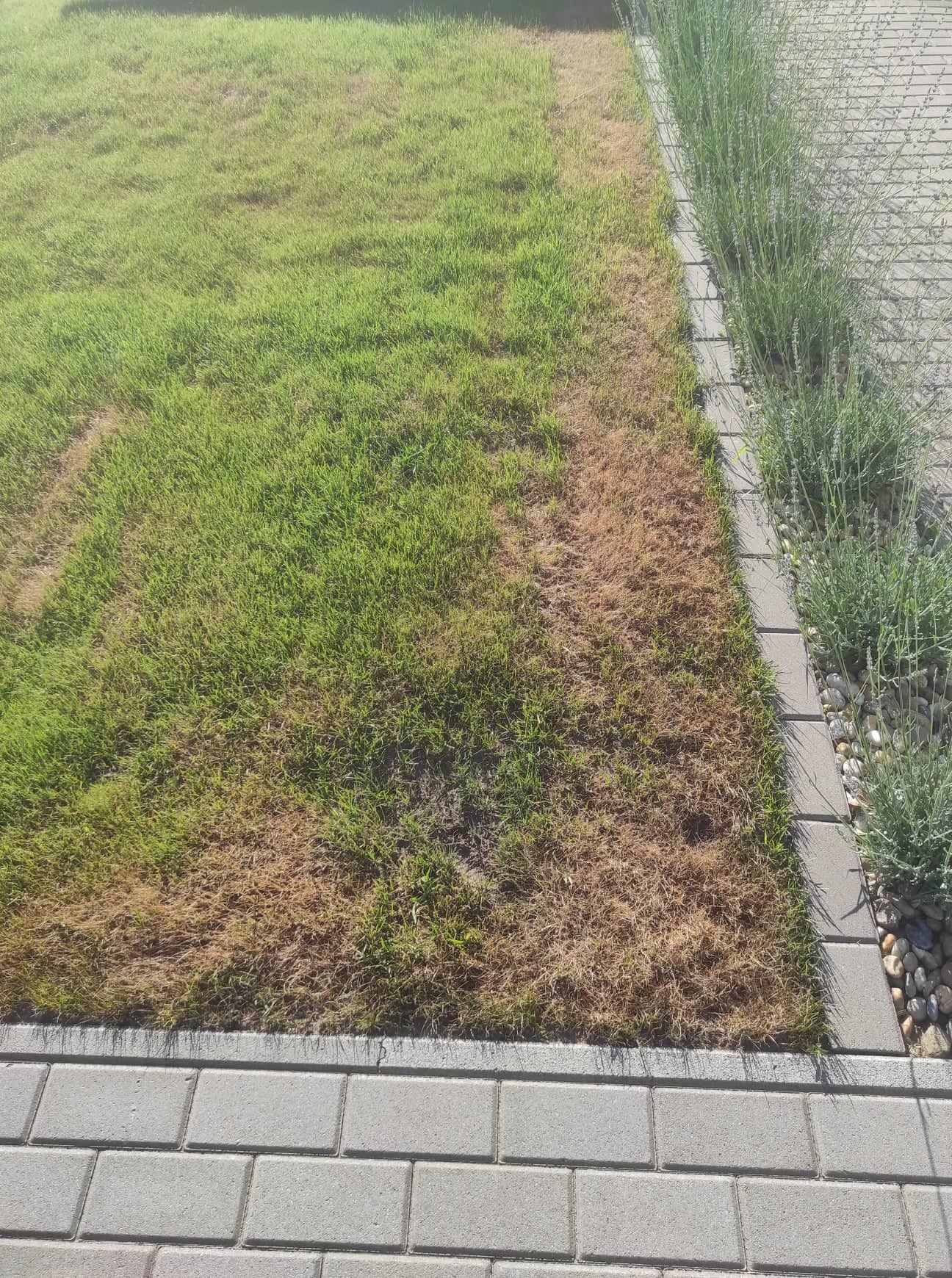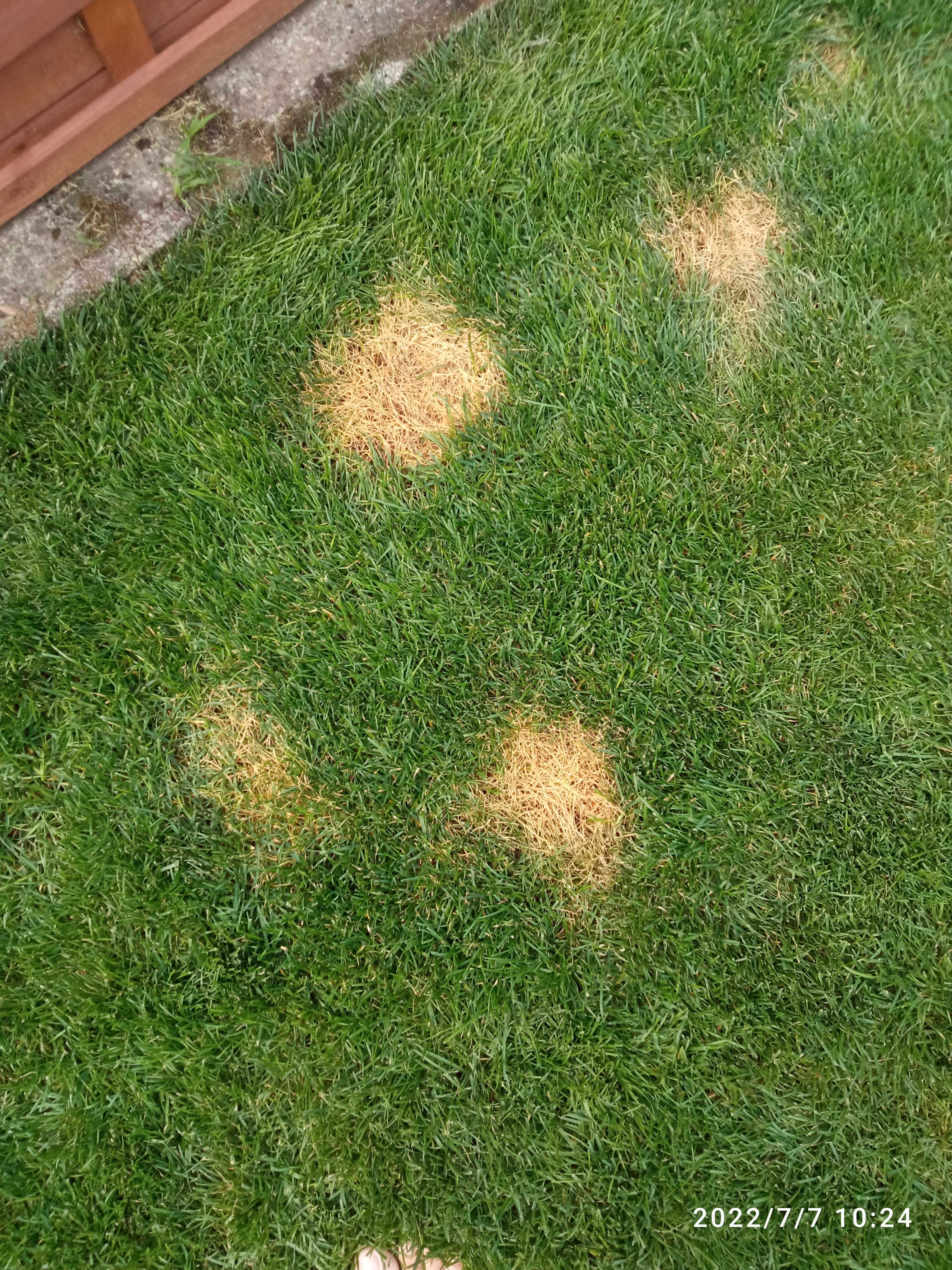 Első hetekben néhol kisebb sárga foltok jelentek meg, amelyek közepén végül a fű eltűnt. (Mi a kutyára gyanakodtunk, ezért nem foglalkoztunk a témával nagyon..valahol neki is élnie kell) 1. kép, 3.kép