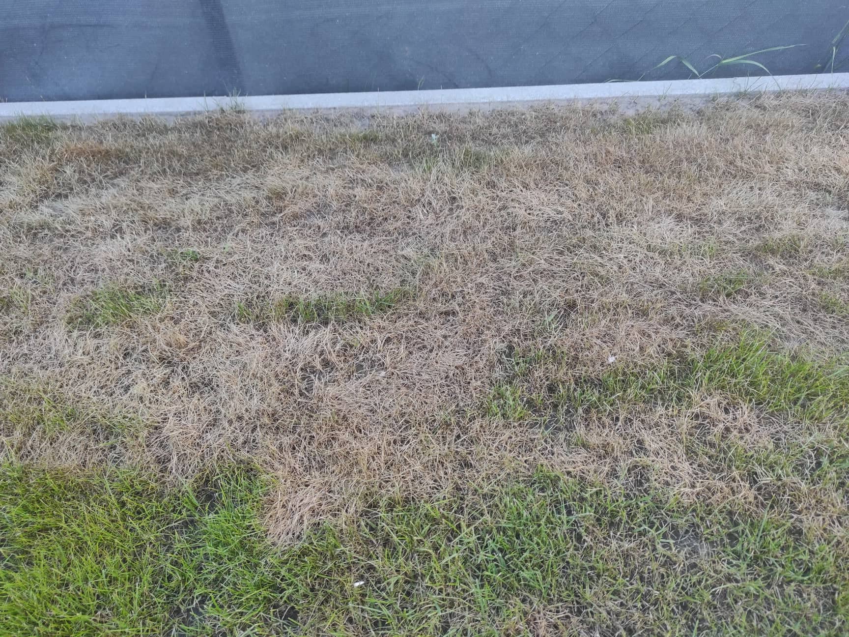Tavaly hozattunk földet a kertünkbe, amelyet idén tavasszal (március- április) előkészítettünk, fű telepítésre. (lazítás hengerezése, majd vetéskor ismét lazitás és mag vetést követően hengerezés). Szépen ki is kelt a fű, azonban most hogy beköszöntött a június a képeken látható problémák jöttek elő. kisebb nagyobb foltokban elsárgul kiszárad a fű. Locoslni 2-3 naponta az esti órákban szoktuk, májusban kapott egy kis bio műtrágyát is. 4-5 cm vágási magasságot szoktunk hagyni.