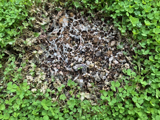 Sajnos egyértelműen nem tudtuk beazonosítani, de bármilyen penészgomba vagy egyéb gomba lehet, ami a hereféléket támadja, akár lisztharmat vagy peronoszpóra. Nem javaslom önmagában vetni, fűmagkeverékkel keverten vesse el. Amistarrral célszerű kezelni a területet.