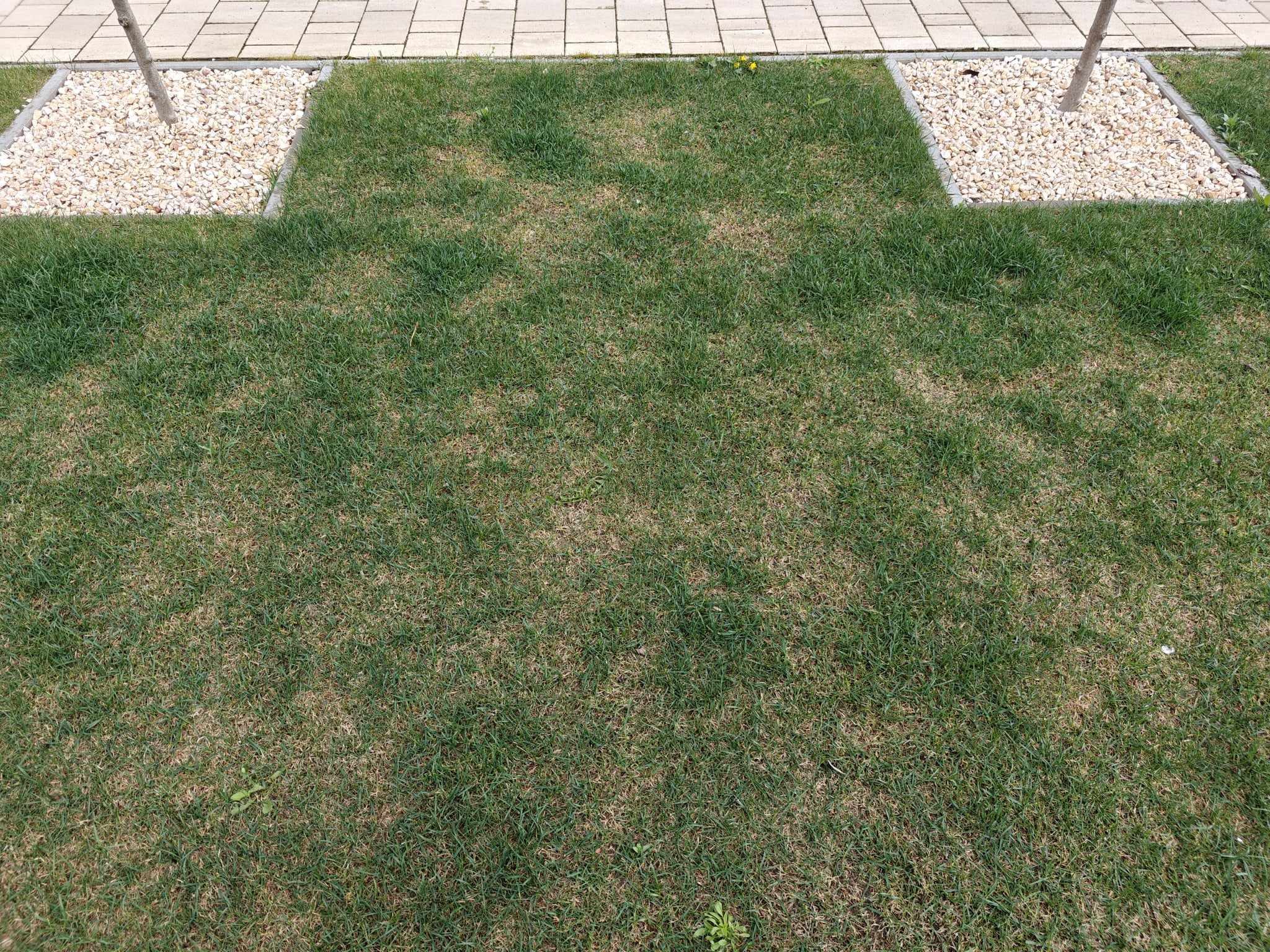 Műtrágyát tőlük tavaly csak tavasszal kapott a gyep, a télit én szórtam el október végén, amikor már zavart a szín és kiderült a műtrágyázás hiánya. Idén, kettő héttel ezelőtt volt ismét egy tavaszi műtrágyázás, az elmúlt néhány napban látok némi halovány javulást, kisebb területeken zöldebbre váltott a fű, de az összkép több mint siralmas.